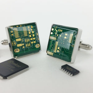 Geek your heart out on our Classic Circuit Board Cufflinks made from recycled electronics.