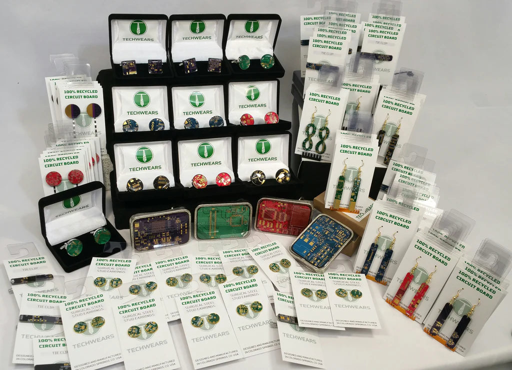 TechWears is a Colorado manufacturer of custom bulk keychains and promotional products made from 100% recycled circuit boards. We help businesses, institutions, retailers, and event organizers create distinctive branded items that combine visual impact, useful function, and a more meaningful sustainability story.