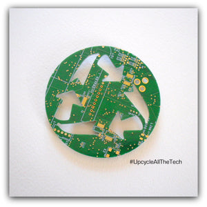 Perfectly aligned with our mission to reduce, reuse, and upcycle our way to a better future. This Circuit Board Recycle Symbol is difficult to make, but the struggle is worth it because the people who enjoy these are also in the trenches doing the difficult work of creating a zero waste future! (New photos coming soon!!)