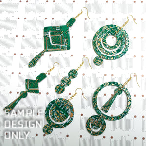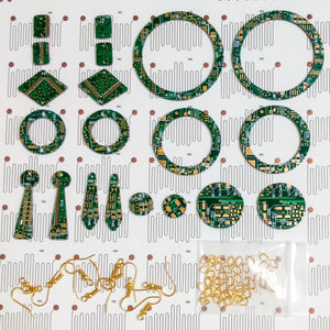 Grab your favorite pair of pliers, clear off a table, and get to work! Our kit of beautifully cut recycled circuit board earring parts are modular, lightweight, and SO MUCH FUN! Available in 2 sizes: Starter Kit (make 3-5 pairs) or the deluxe (make 8-11 pairs)! You are only limited by your imagination...